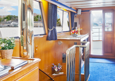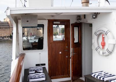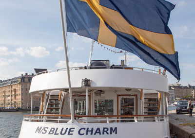 M/S Blue Charm är vår största båt. Med plats för 120 gäster passar den perfekt för fester och middagar såväl som mingel och konferenser. Det finns rymliga ytor både inomhus och på soldäck utomhus.